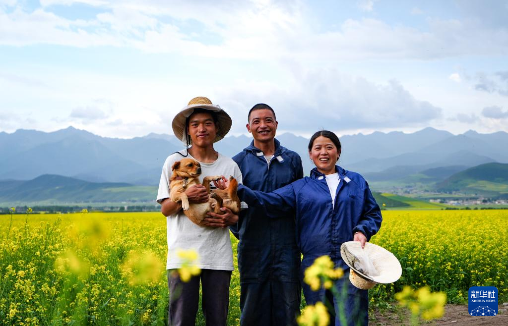 這是攝于青海省海北藏族自治州門源回族自治縣花田的吳鳳明一家(7月16日攝)。新華社記者 齊芷玥 攝