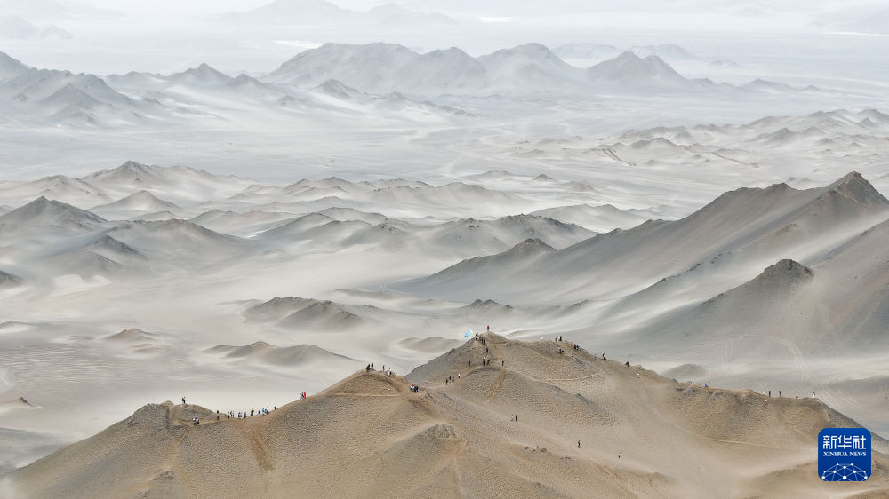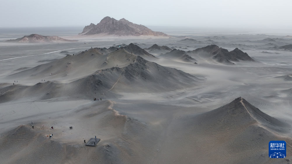 7月30日,游客在冷湖鎮黑獨山游玩(無人機照片)。 新華社記者 張龍 攝
