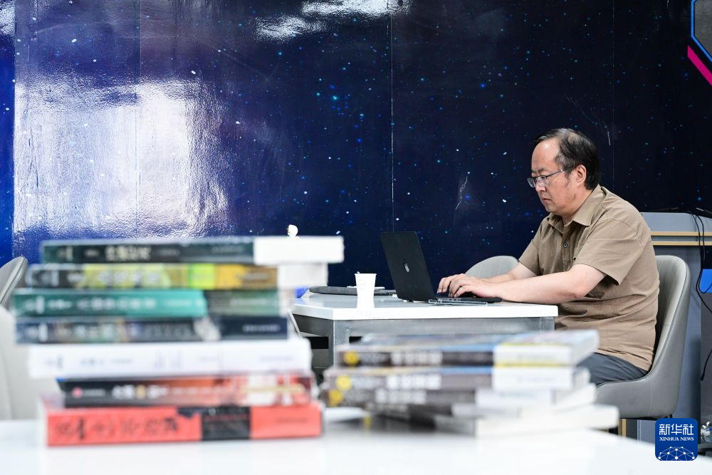 7月29日,科幻作家楊平在冷湖鎮“冷湖實驗室”創作。 新華社記者 張龍 攝
