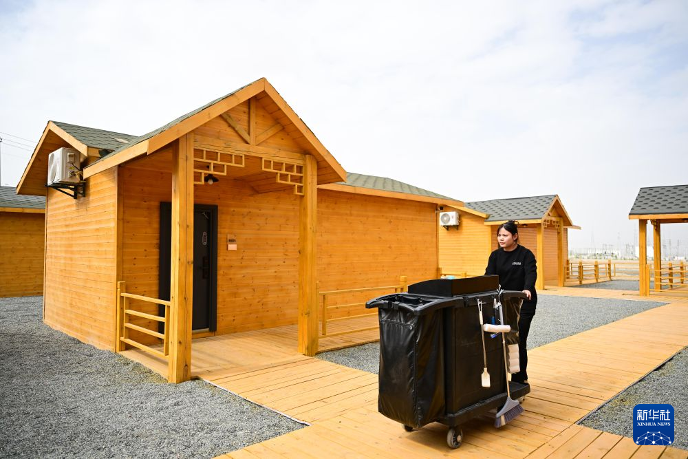 7月30日,冷湖鎮一家民宿的工作人員準備清理房間。 新華社記者 張龍 攝