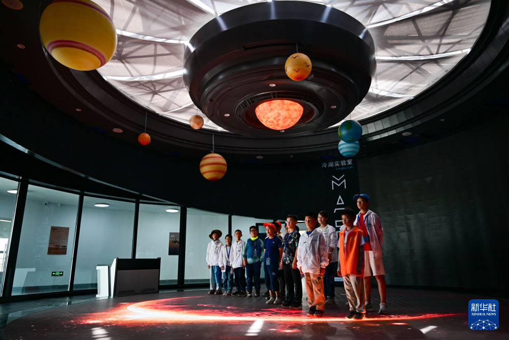 7月29日,參加暑期研學的小朋友在冷湖鎮“冷湖實驗室”學習天文知識。 新華社記者 張龍 攝