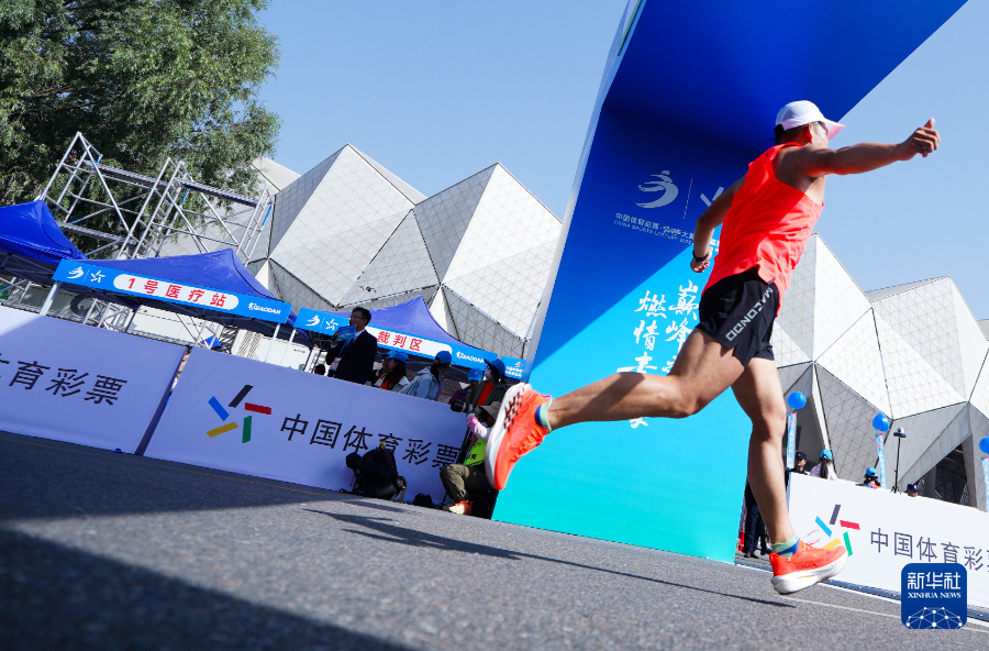 9月14日,一名參賽選手在比賽中沖過終點。新華社記者 齊芷玥 攝