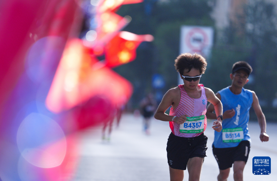 9月14日,半程馬拉松選手在比賽中。新華社記者 齊芷玥 攝