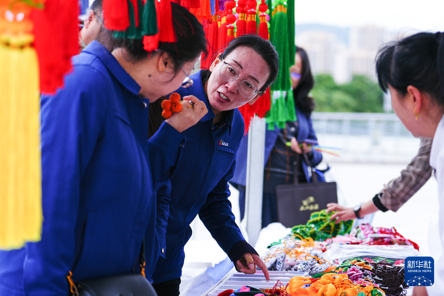 9月17日,參賽職工在工匠集市挑選非遺文創產品。新華社記者 齊芷玥 攝